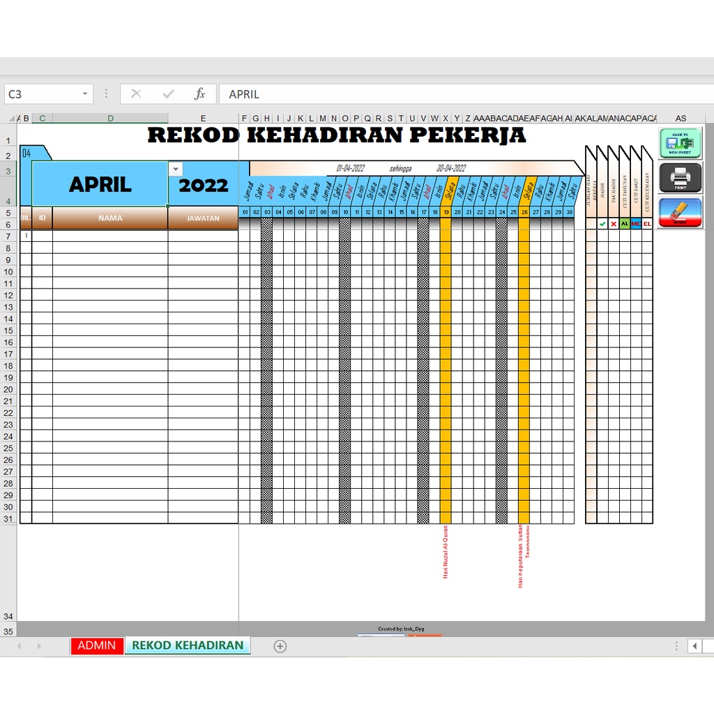Automated Employee Attendance Record Rekod Kehadiran Pekerja Employee Attendance Tracking System In Excel With Macro Shopee Malaysia