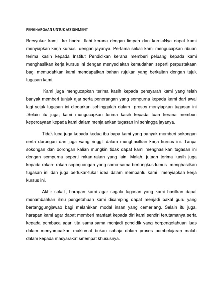 Contoh Penghargaan Untuk Kerja Kursus Pdf